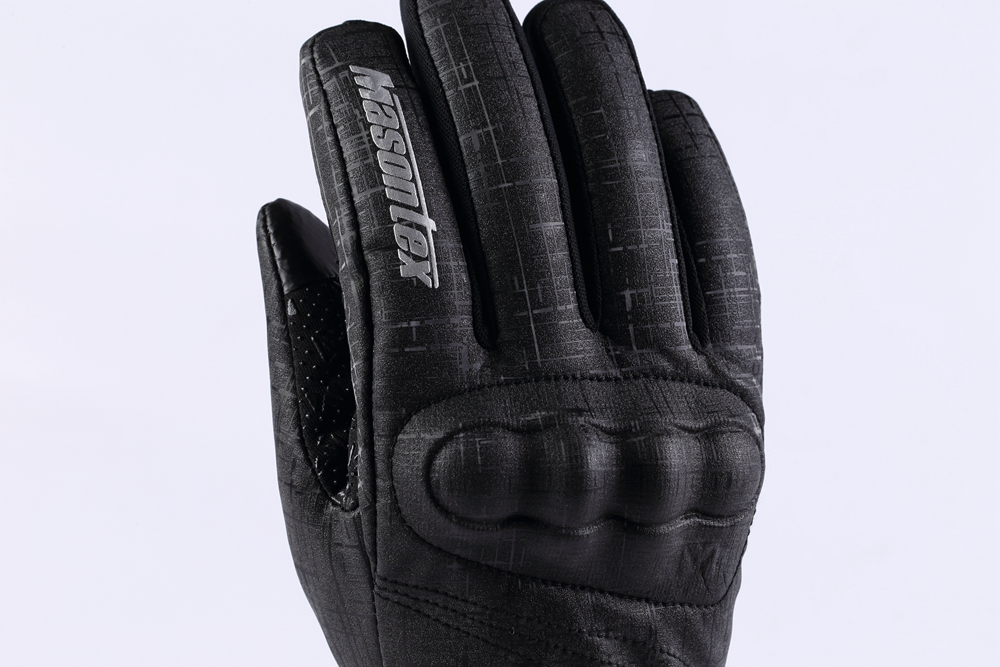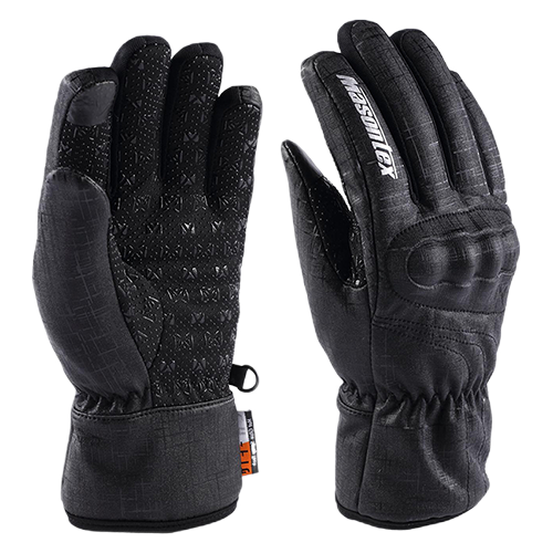 全指长袖口手套,关节处带有TPU护壳保护,手掌为健康布滴塑材质,适合寒冷骑行条件下的运动型骑手。